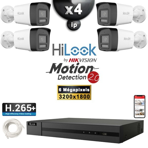 Ce kit complet de vidéo-surveillance HiLooK par HIKVISION comprend 4 caméras intérieures / extérieures très haute définition 6 MegaPixels (3200 x 1800 à 20 images par seconde) équipées de micros et de LED hybrides pouvant illuminer jusqu'à 30 mètres. Un disque dur de 2000 Go est inclus. Ces caméras offrent également la fonctionnalité avancée de détection de mouvement 2.0 avec classification des humains et des véhicules. Elle est équipée d’un microphone pour capter le son, permettant une écoute à distance via l’application Hik-Connect ou un navigateur web. L'installation est simple : connectez les câbles et liez-les à l'enregistreur pour que votre kit soit prêt à l'emploi. En cas de besoin, notre assistance technique est à votre disposition pour vous aider gratuitement dans le paramétrage. Pour une qualité d'image optimale, l'utilisation d'un écran UHD 4K est recommandée.