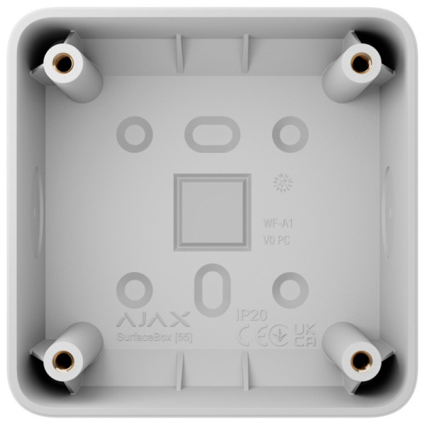 Ajax SurfaceBox [55] es una solución diseñada para la instalación segura y ordenada de los módulos LightCore y OutletCore del ecosistema Ajax. Permite montar estos dispositivos de forma externa en superficies donde no existe una caja de instalación empotrada, como paredes de hormigón, madera o materiales complejos, siempre en entornos interiores.